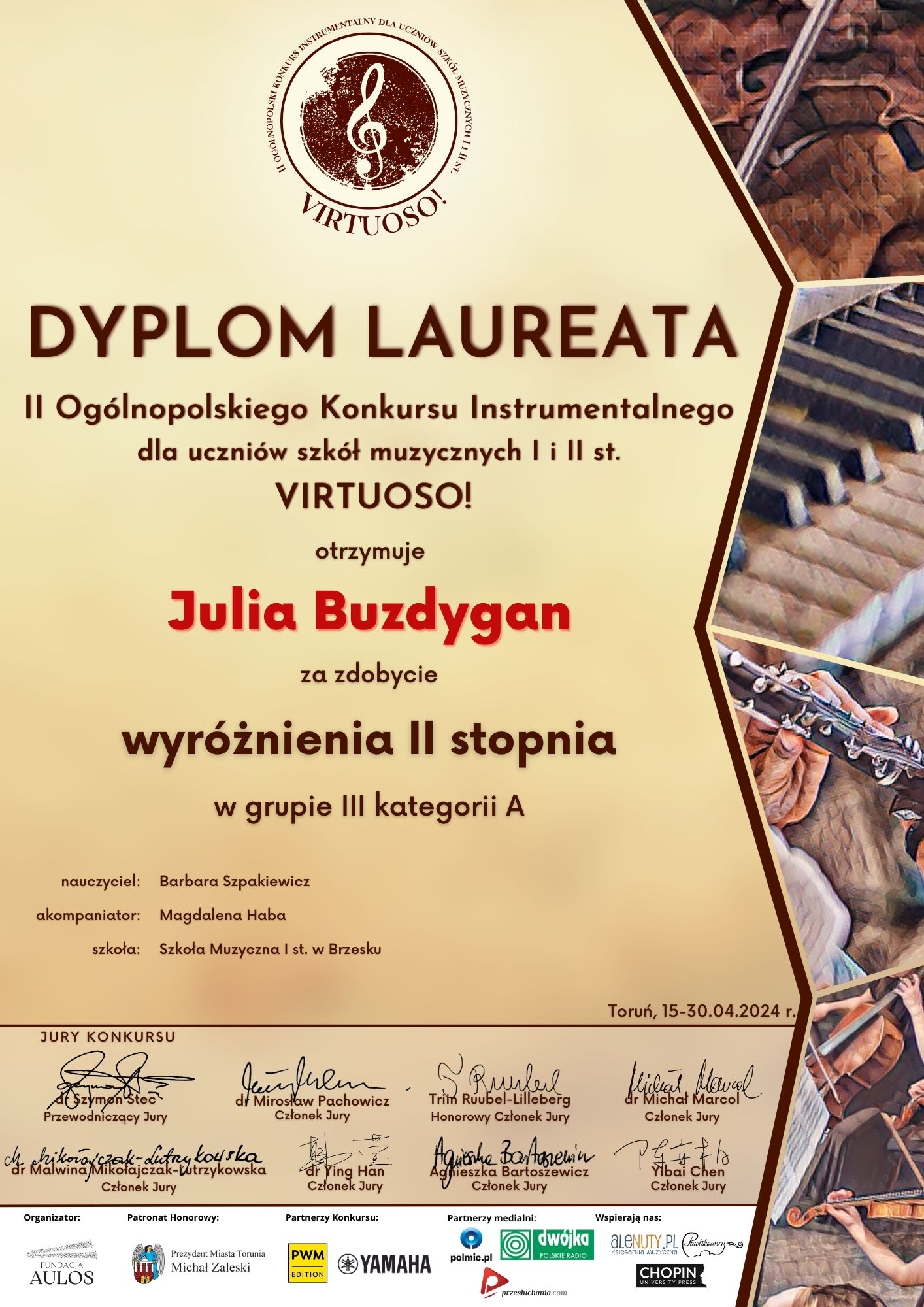 Gratulacje dla Julii Buzdygan oraz nauczycieli: p. Barbary Szpakiewicz i p. Magdaleny Haby.